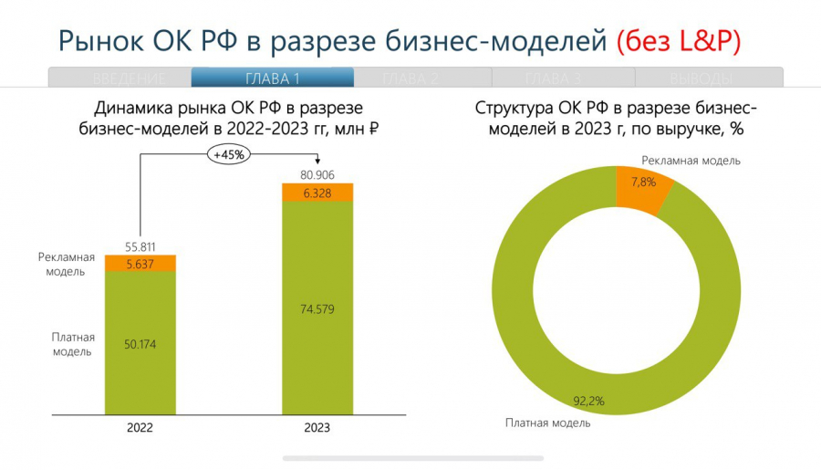 Выручка онлайн-видеосервисов в России увеличилась на 45% по итогам 2023 года, вернувшись к высоким темпам роста, которые фиксировались на рынке до 2021-го включительно. Показатель составил 80,9 млрд руб. против 55,8 …