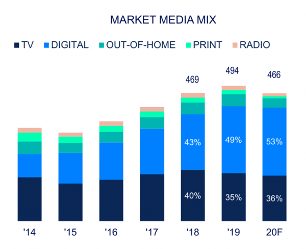 GroupM изменил прогноз российского рынка рекламы в 2020 году
