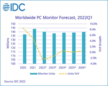 IDC: мировой рынок мониторов в Q1 2022 практически не вырос