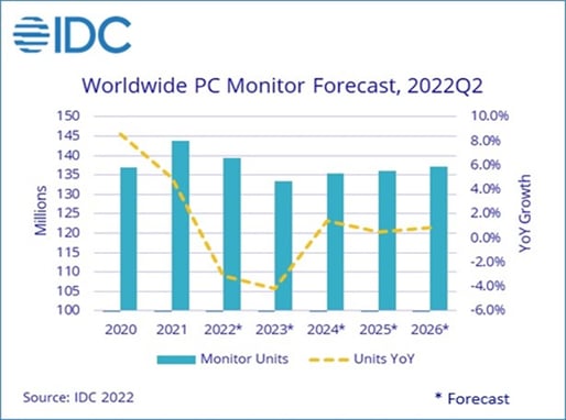 Однако, дальнейшие перспективы рынка мониторов не радуют: в 2022 г. в целом аналитики прогнозируют падение на 3.1% в годовом выражении, а в 2023 г. — ещё на 4.2%, и лишь в 2024 г. возможен слабый рост. Значительная часть этого снижения придётся на Китай — второй крупнейший региональный рынок. Так, в 2022 г. он, по прогнозу, сократится на 19%, китайский рынок мониторов не падал так сильно с 2008 г.