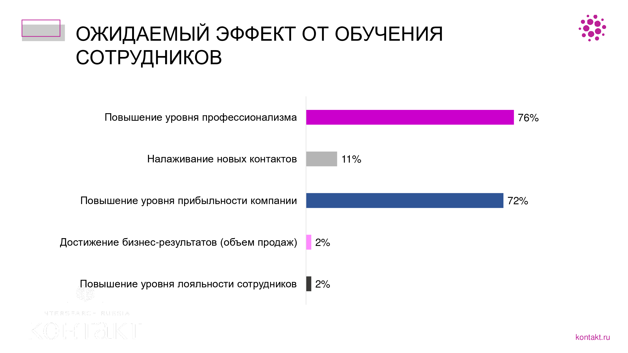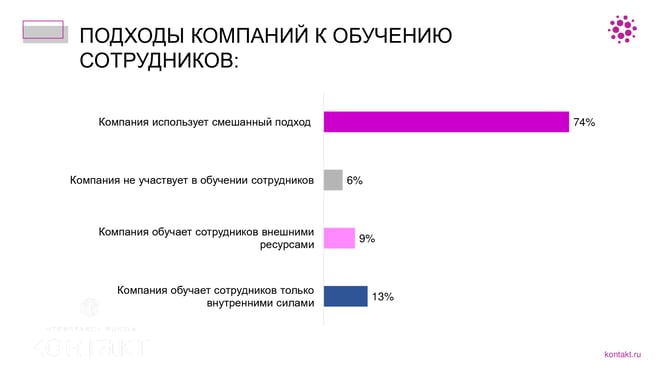 Хедхантинговая компания Kontakt InterSearch Russia провела исследование на тему ключевых трендов в обучении персонала. В опросе приняли участие 532 респондента – собственники и CEO, а также директора по персоналу из разных индустрий российского бизнеса.