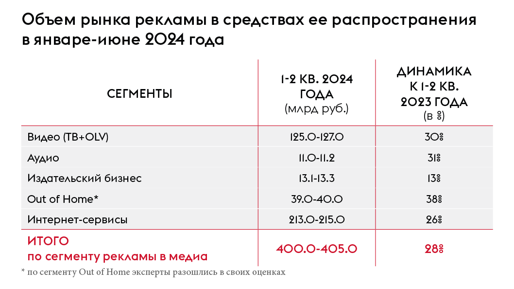 Объемы рекламного рынка за первое полугодие 2024-го достиг 400 млрд рублей