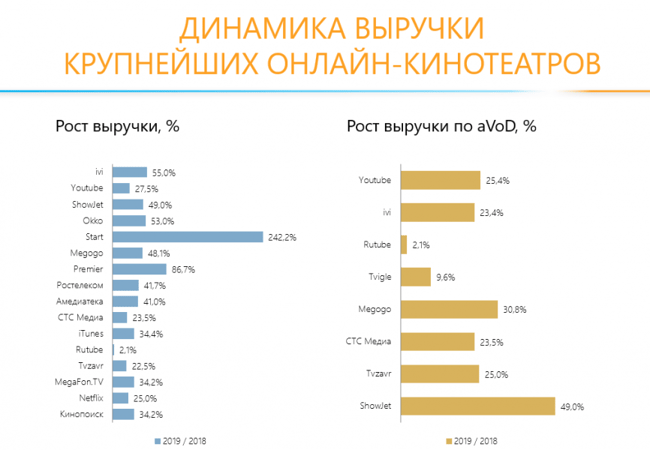 В измененной версии отчета аналитики исключили Okko из тройки представителей рынка с максимальным ростом выручки. Теперь первые строчки занимают сервисы Start, ivi и Premier.