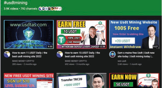 Используя методы сбора и анализа данных, исследователи обнаружили более 700 URL-адресов, связанных с мошенническими инвестиционными приложениями, но заявили, что криптокошельков злоумышленников могут быть тысячи – хештег «#usdtmining», который преступники оставляли под видео, содержит более 3900 похожих видео.