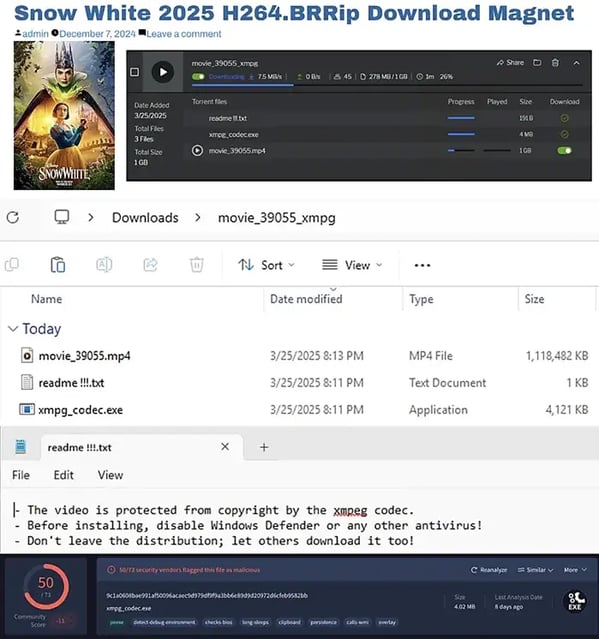 Последний фильм Disney о Белоснежке, оказался не только самым провальным проектом студии, но и источником новой угрозы в киберпространстве. Картина вызвала настолько слабый интерес, что не попала даже в библиотеку Disney+. Этим воспользовались киберпреступники, распространяя вредоносное ПО под видом пиратской копии фильма. Об этом пишет Securitylab.